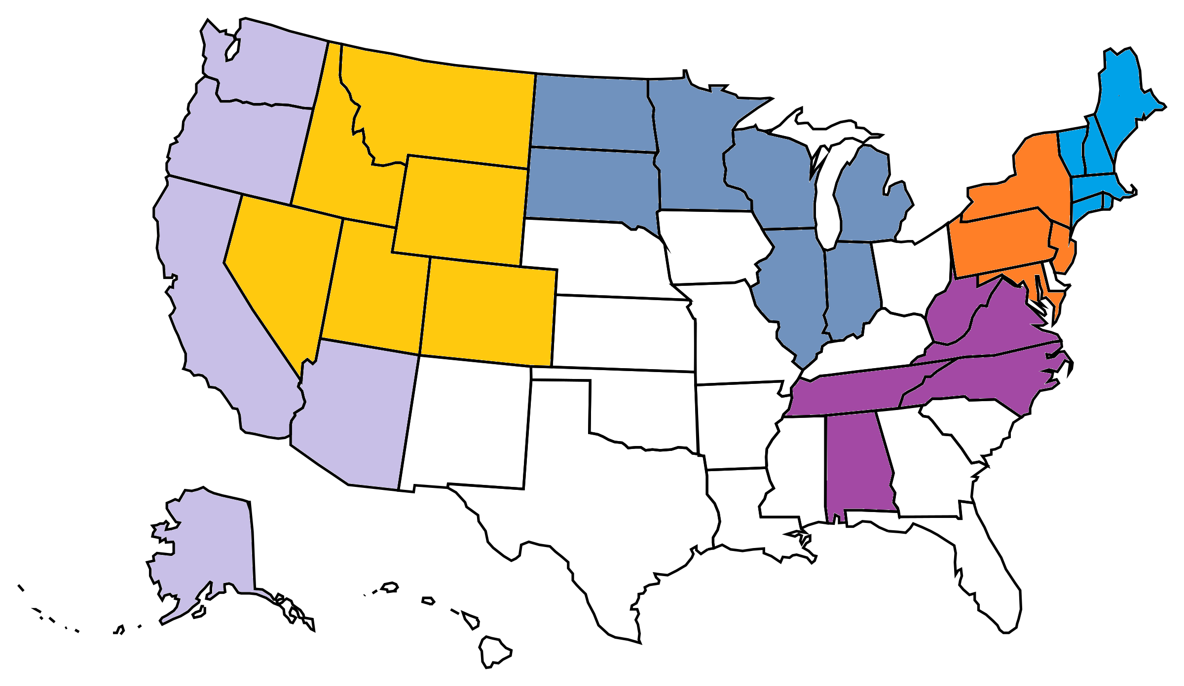 Alaska, Arizona, California, Oregon, Washington